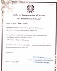 加中学员都灵美院录取通知书