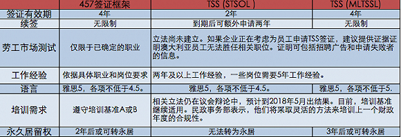 自从去年4月18日,澳洲总理马尔科姆·特恩布尔(Malcolm Turnbull)声明将“废除”457技术移民签证继而推出新的临时签证后,近一年来,澳洲技术移民签证出现了一系列新变化和新规定。 今年3月18日,457签证被废除,取而代之的是TSS签证(Temporary Skill Shortage,临时短缺技术工作签证)。这项新签证是澳大利亚政府重大改革方案的一部分,目的在于加强澳大利亚临时和永久雇主担保移民计划的诚信和质量,以便引进真正的技术工人来解决劳动力短缺的问题,因为具有熟练技术能力的澳大利亚本土人才十分紧俏。 TSS签证分为两大类别:为期2年的短期工作签证和为期4年的中期工作签证。其中,短期工作签证只能续签一次。短期技术职业名单(STSOL)将适用于TSS短期工作签的申请人,中长期战略性技术职业名单(MLTSSL)将适用于TSS中期工作签申请人。中期工作签的持有人须在澳洲境内办理续签手续,为雇主工作3年后或可申请永居签证。 与457签证相比,TSS在立法和政策方面有重大变化。具体而言,申请人从事的职业需要在中长期战略性技术职业名单(MLTSSL)或短期技术职业名单(STSOL)中获得提名。这些职业名单将每六个月更新一次,下一次更新提名名单预计在今年6月。因此,这些不断更新的技术职业名单就成了新政策下技术移民签证的关键框架结构。 在整个立法和政策调整变革过程中,相关部门也会更名为民政事务部。 其中有三个方面值得注意: 1. 过渡安排 2017年4月18日之前已持有或已申请457签证的人,在TSS正式实施后仍可以享受旧的政策,转永居依然只需要两年。但是,在2017年4月18日之前未持有或未申请者,只能按照新的政策。 2. 技能评估 在TSS签证框架下,民政事务部有权要求申请人完成技能评估。相比于457签证框架,这是一个重大变化。此外,一些特定的职业需要进行必要的技能评估。如果申请人缺乏正规的资格认证,职业评估很可能不尽如人意。因此,作为雇主,在作出海外招聘的决定前请征求民政事务部的意见。 3. 确保职位真实性 民政事务部门必须确信雇主提供的职位是一个实实在在的职位。雇主需要完成关于所提供职位的信息表,并提供该职位如何落实在受雇者实体范围内的证明。