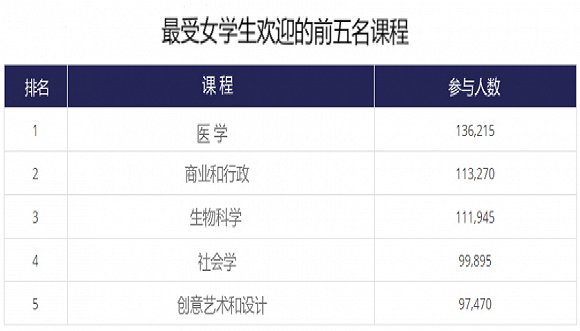 英国高等教育统计局(简称HESA)近日公布了2016-17年度英国最受欢迎和最不受欢迎的大学课程。其中,女学生最喜欢的是医学课程,而男学生则更喜欢商业和行政课程。 大学课程的选择不仅反映了每个学生的个人兴趣爱好,更体现了课程内容的吸引力以及未来的就业情况。然而,由于男生和女生的擅长领域和思维模式等因素的不同,课程选择在性别方面也存在较大差异。 数据显示,最受女学生欢迎的课程大多与医学有关,共有136,215名学生参与了相关课程的学习;其次是与商业和行政有关的课程。医学专业大致可以定义为集诊断、治疗和预防疾病为一体的科学和实践。而与医学相关的课程之所以倍受欢迎,一方面学校的课程注重理论和实践相结合,学生通常会在校学习一到两年后,被引荐到诊所或医院进行实践。另一方面,医学领域涉猎广泛,人才需求较大,有更加良好的就业前景