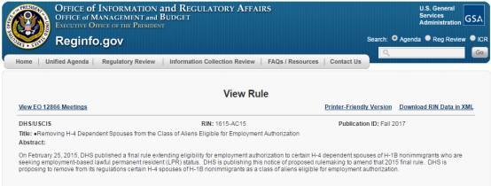 此举的目的本是为了吸引和留住受过高等教育的优秀外来人才,帮助H-1B家庭减轻负担,让高端人才配偶们可以出来工作,而不只是待在家里。同时,因为很多配偶本身也持有高学历,能为美国带来价值。如果允许他们在美国工作,利用起这部分人才,也能使他们更安心地在美国生活。 每年约有10万名H-1B持有者的配偶和子女通过H-4签证来到美国,自2012年开始,持H-4签证来美的人数稳步上升。从2015年10月到2016年9月,共有41526名H-4持有者获得了工作许可。在2016年,国安部发出了超过4万1千份H-4工作许可。2017财年这个数字更是进一步递增,到6月为止,就有超过3万6千份许可被发出。这其中,除了印度申请人,中国籍申请人就是最大的群体。 但在奥巴马新政策刚提出来没多久,一个主要由IT工作者组成的,名叫“拯救美国工作” (Save Jobs USA) 的组织就对该政策提起了诉讼。他们认为本来持有H-1B签证的外籍工作者就抢了他们的工作,现在H-1B的伴侣H-4又可以工作了,而且自由度比H-1B还高,这大大加大了对美国本地人找工作的威胁。 但是,地方法院以该团体不具备诉讼案的“出庭陈述权” (Locus Standi) 为理由,判决维持该项政策的效力。司法部长塞辛斯 (Jeff Sessions) 在担任参议员时也曾表示,容许H-4签证持有人在美工作是“改变移民法,伤害美国工人”。